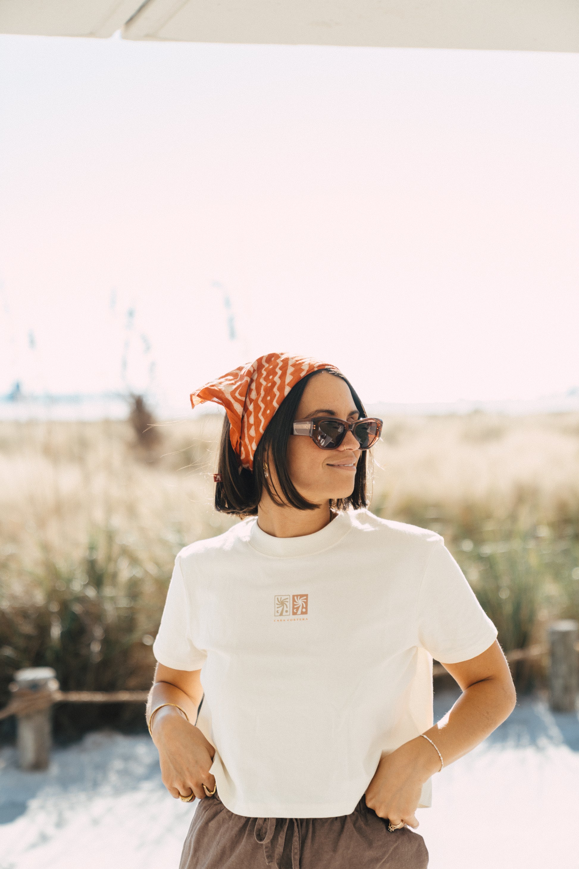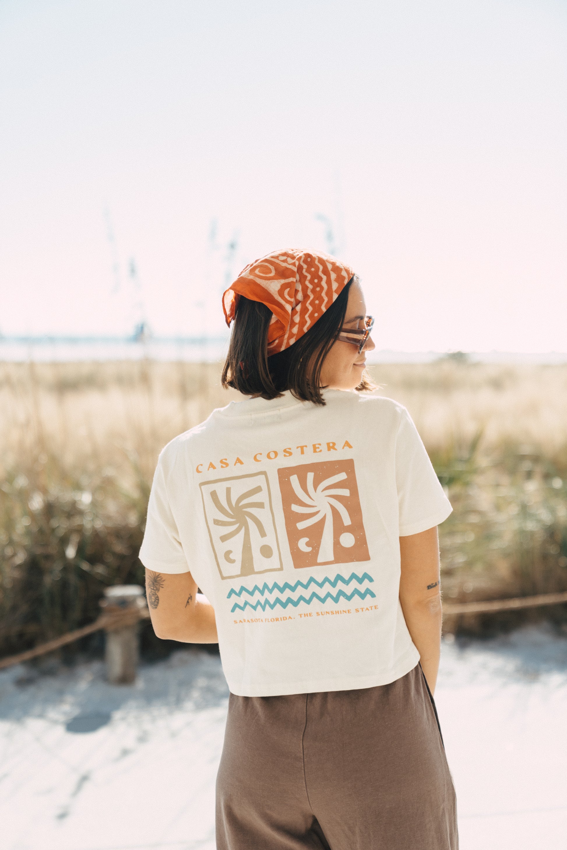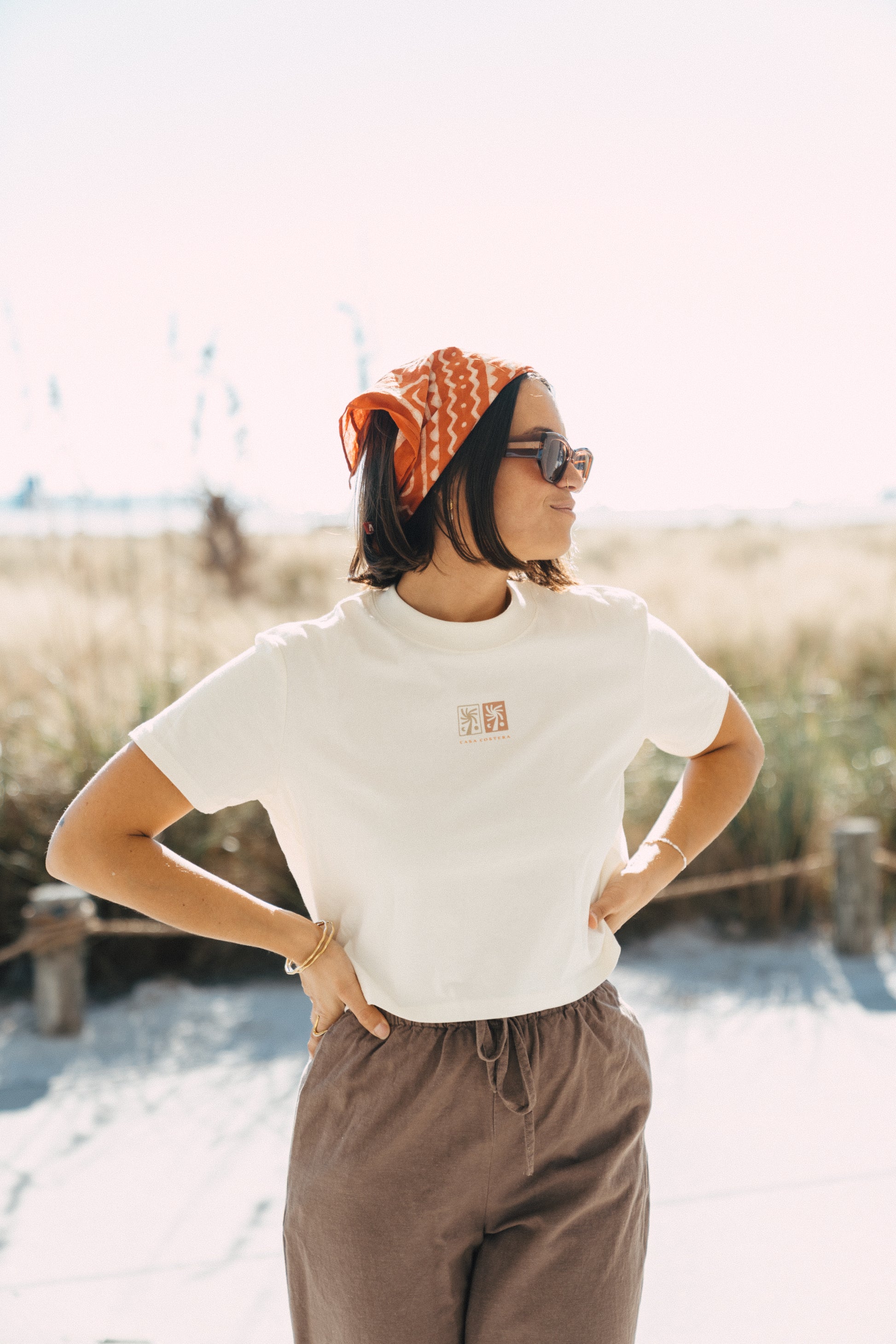 The Palmera Crop delivers understated coastal elegance in pure organic cotton. Designed for those sun-soaked moments—whether you're lounging beachside or cooling off with a refreshing ocean swim—this cropped tee offers lightweight breathability and natural softness against your skin. The relaxed fit captures that effortless, carefree aesthetic of seaside living, while the organic fabric ensures durability through countless wears and washes. A timeless wardrobe essential that transitions seamlessly from beach days to casual everyday wear.