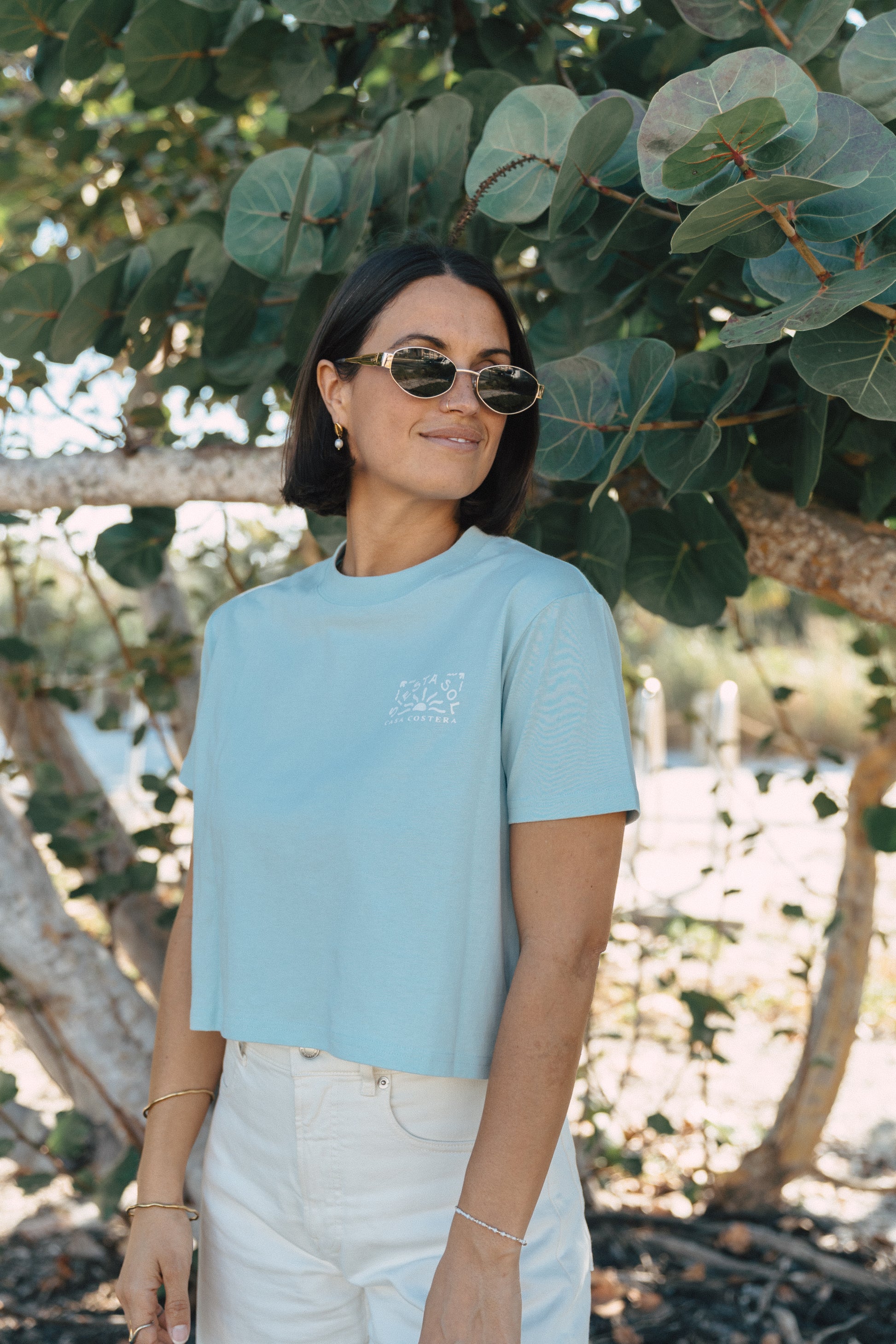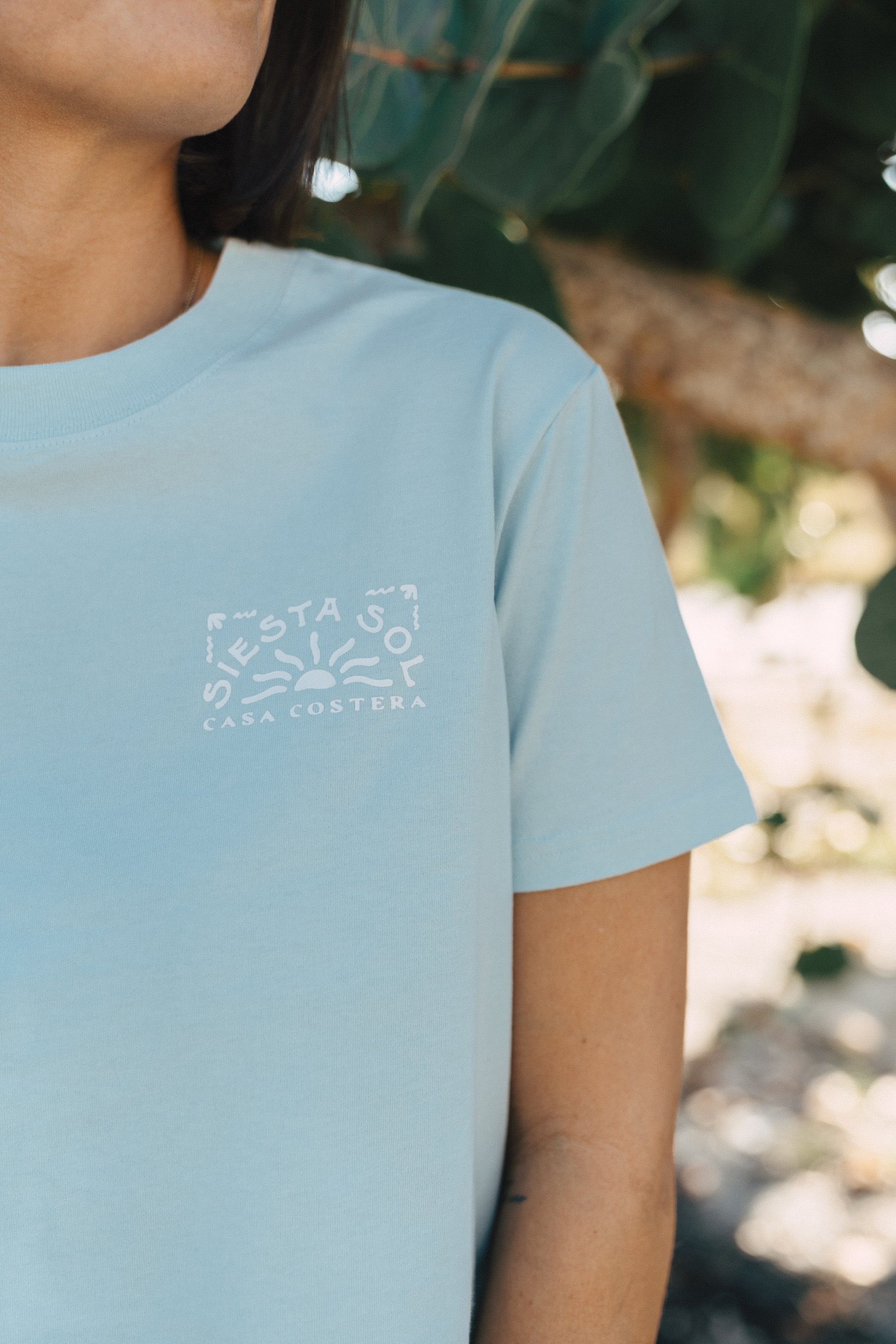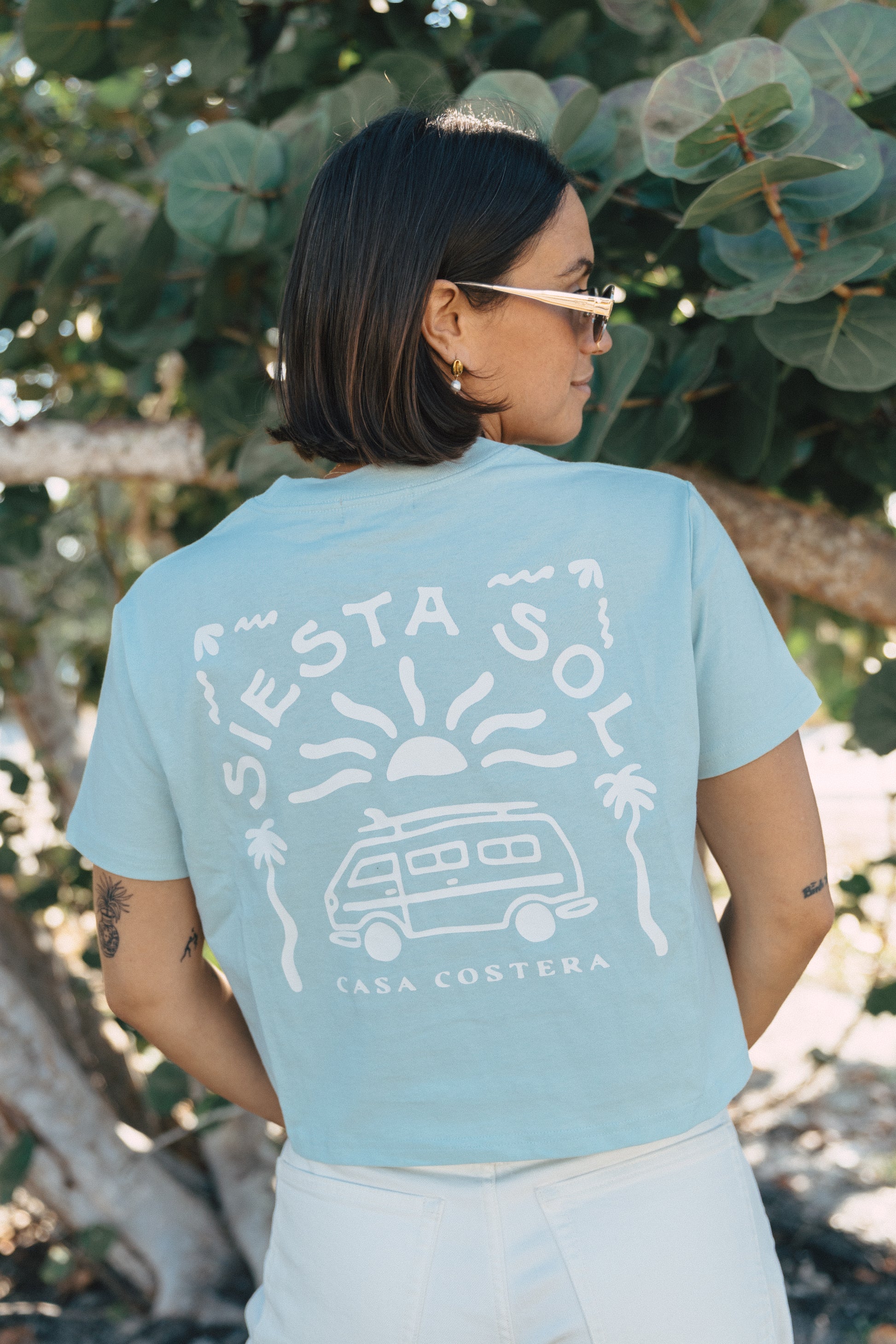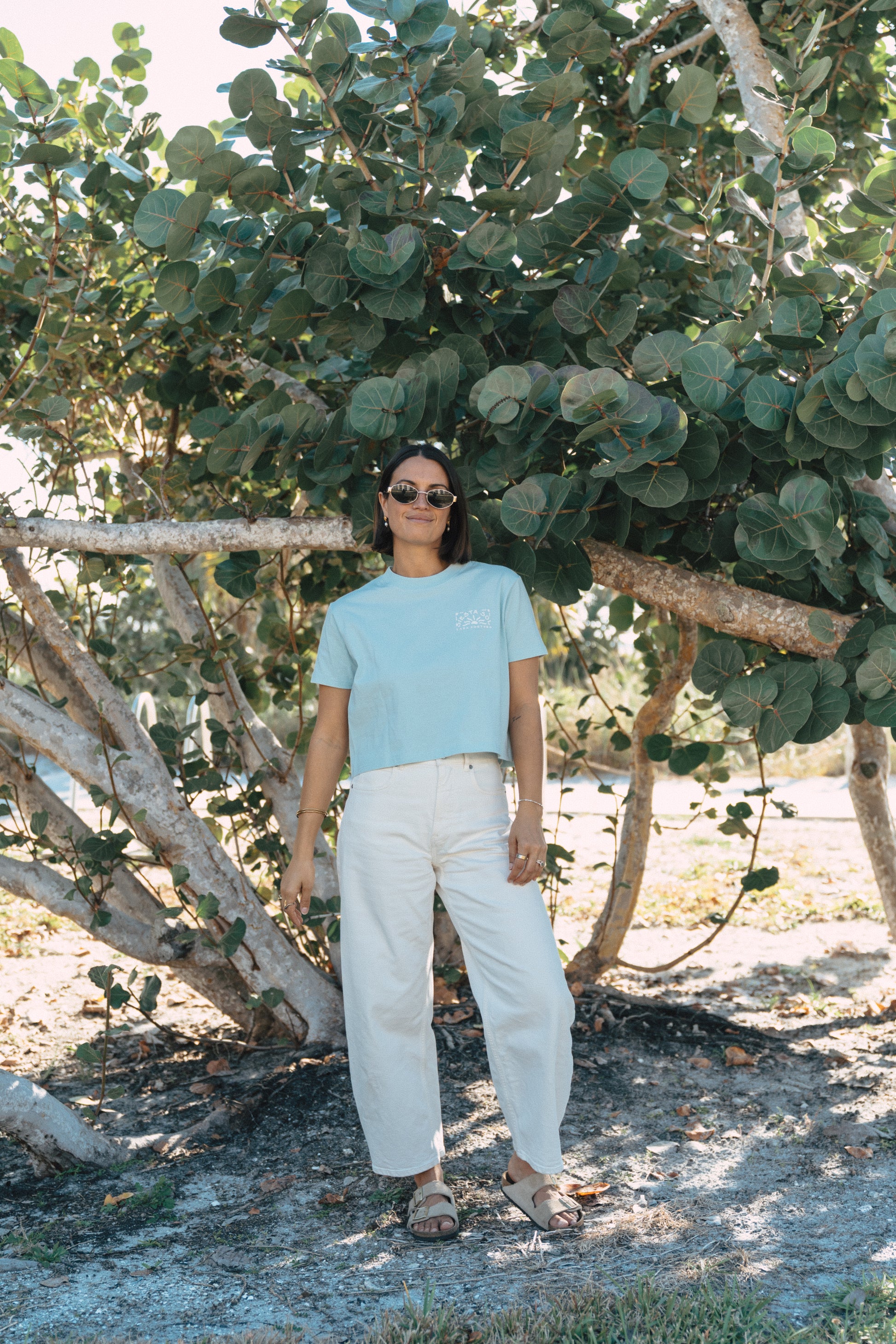 The Siesta Sol Crop embodies the unhurried essence of coastal living through its thoughtfully crafted design. Constructed from 100% organic cotton, this baby blue piece delivers breathable comfort ideal for warm-weather wear while supporting sustainable practices. The soft, muted hue captures the serene palette of beachside retreats, making it a versatile staple that transitions effortlessly from leisurely days to casual evenings. Perfect for those who prioritize both quality materials and a relaxed aesthetic.
