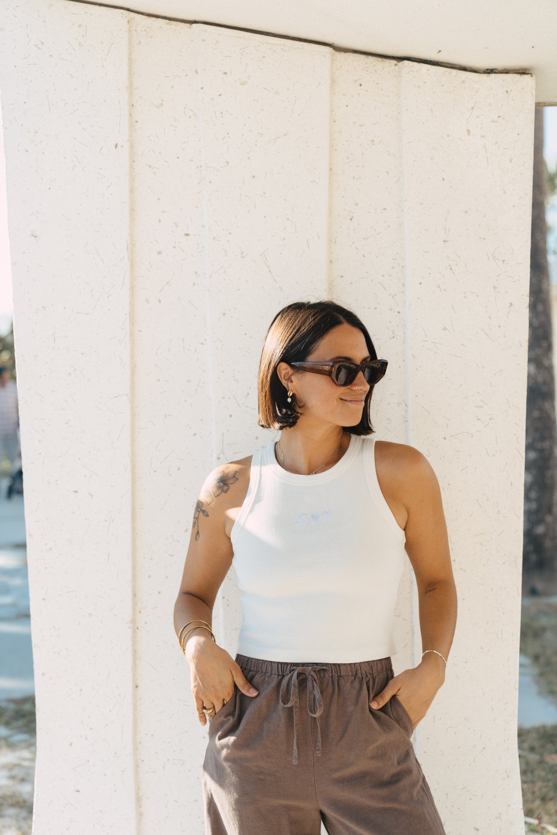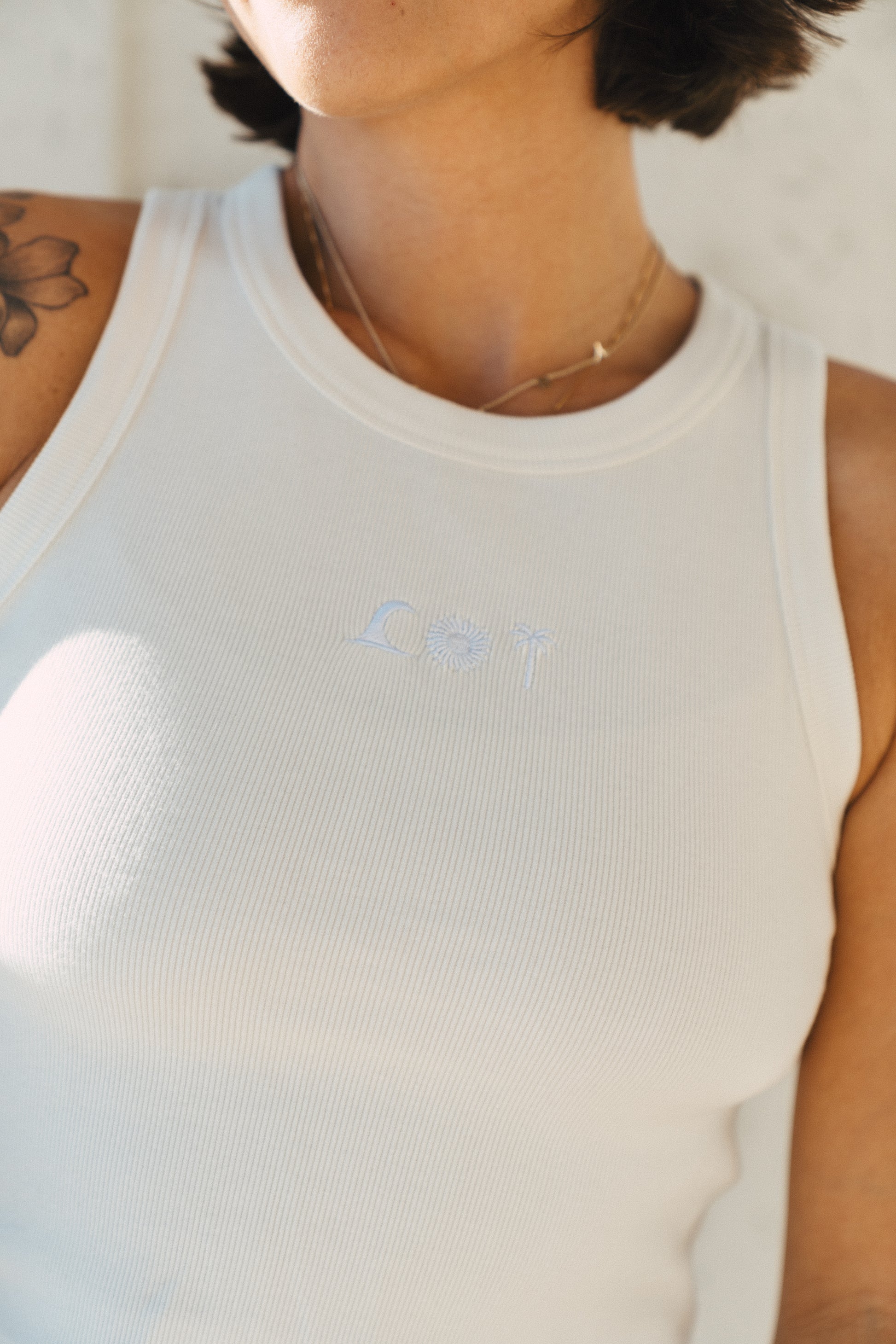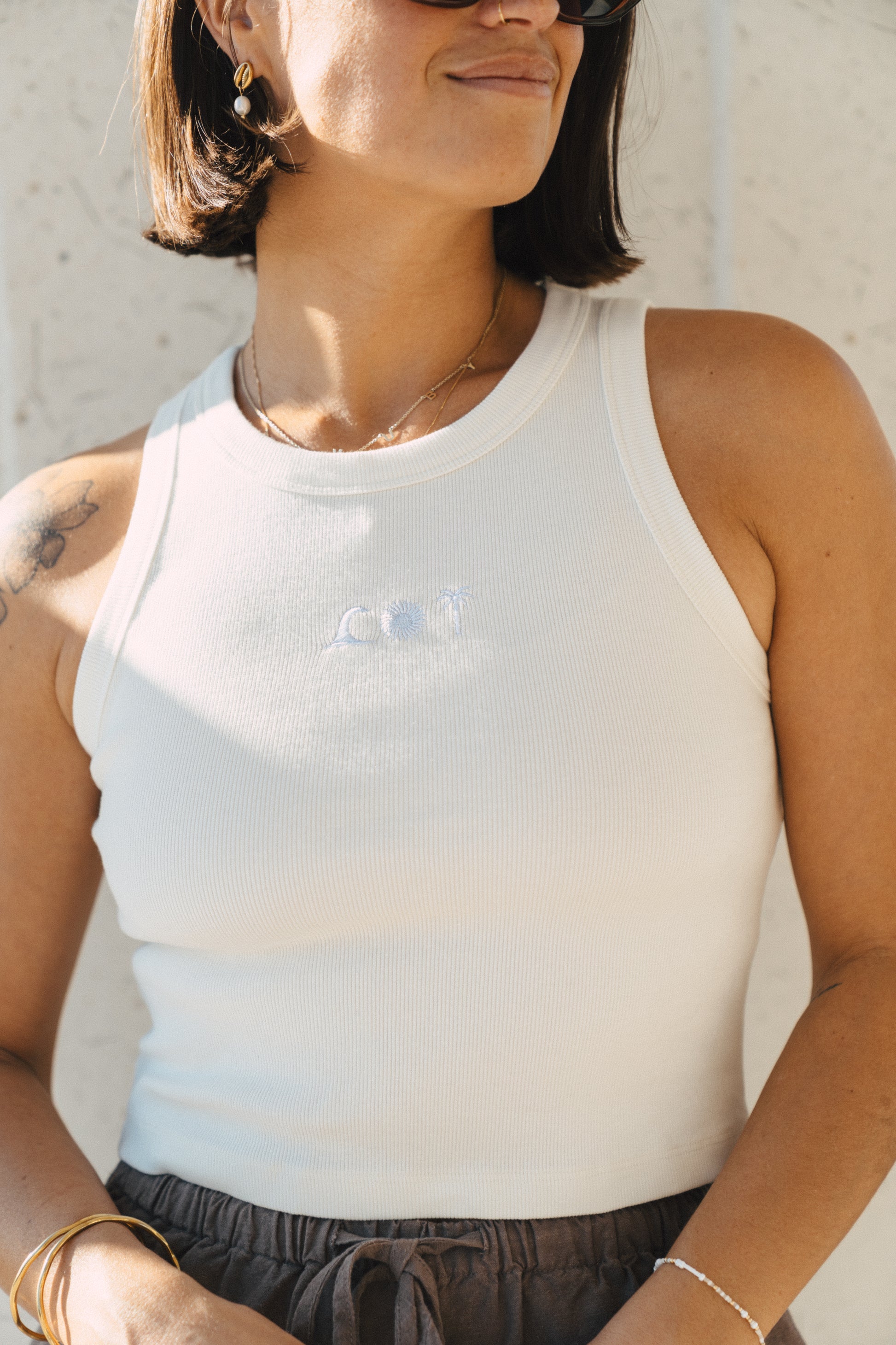 The Wave Sun Palm Tank combines breathable organic cotton with Elastane for a garment that moves with you. Its creamy white base pairs effortlessly with any wardrobe, while delicate sun wave and palm embroidery capture the essence of coastal living. The minimal design and sleek, stretchy fit make this tank equally suited for everyday wear or layering, offering both comfort and understated style for those who appreciate quality craftsmanship and thoughtful details.